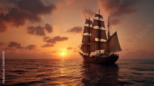 sailing vessel, old boat, exploration, nautical, tall ship, seascape, galleon, ocean view, blue ocean