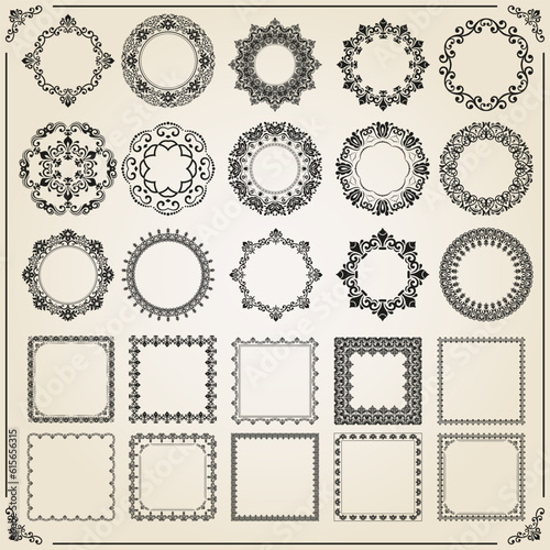 Vintage set of vector square and round elements. Elements for backgrounds and frames. Classic black and beige patterns. Set of vintage patterns