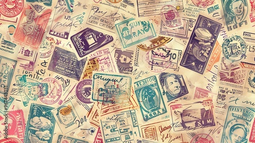 Vintage stamp pattern wallpaper