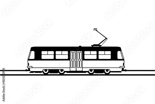 Vintage tram gliding along tracks, a classic urban transport icon perfect for travel, history, or transportation design projects. Scalable vector graphic.