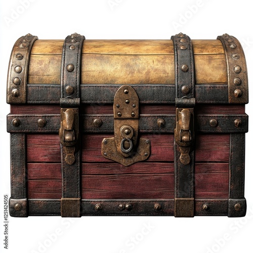 Vintage Treasure Chest With Intricate Metal Hardware and Rich Textures Ideal For Adventure Themes, Pirate Lore, or Antique Collectibles in Rustic Setting