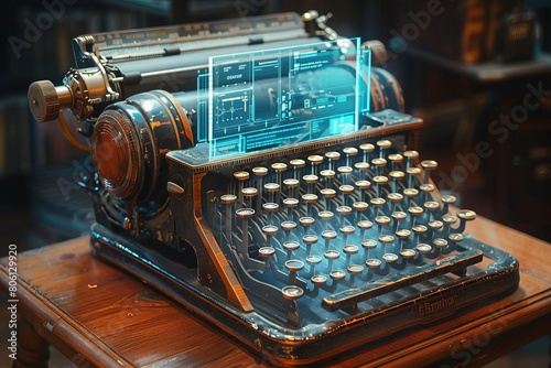 Vintage typewriter with digital screen display, a fusion of old design and new technology