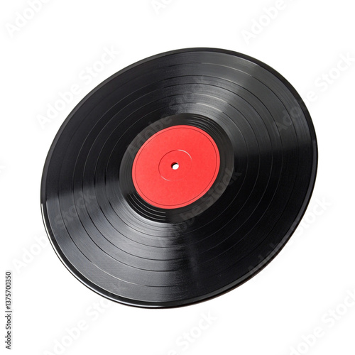 Vintage vinyl record with red label. Music, retro, nostalgia.