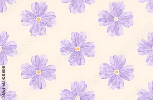 Violet flowers on beige background pattern, simple design, floral pattern