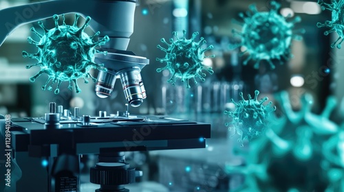 viruses and bacteria under a microscope in a medical and research laboratory