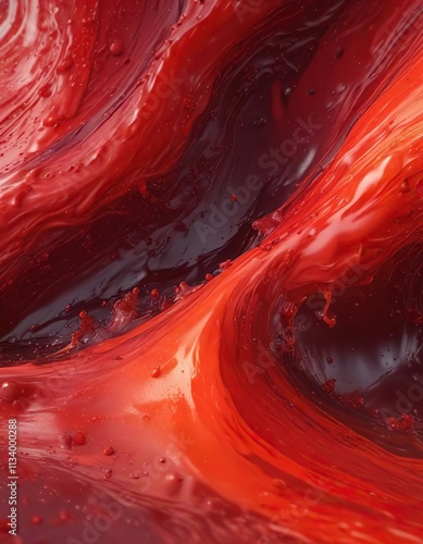Viscous liquid with abstract red-red gradient and turbulent noisy textures , noisy textures, turbulent flow