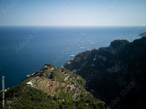 vista della meravigliosa costiera amalfina dai giardini della villa cimbrone di ravello i CAmpania