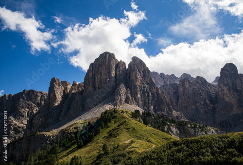 Vista delle Dolomiti dal Passo Gardena in giornata soleggiata