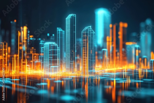 Visual representation of financial schemes in real estate investment with urban skyline