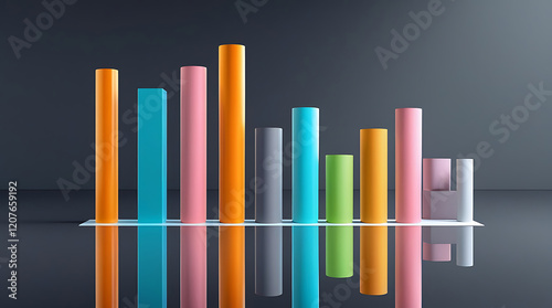 Vivid 3D Bar Chart with Gradient Colors on Reflective Surface, Modern Data Visualization Concept