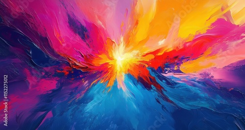 Vivid explosion of colors blending in an abstract artwork portraying energy and movement