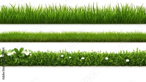 Vivid Green Grass and Plants Background with White Flowers for Design