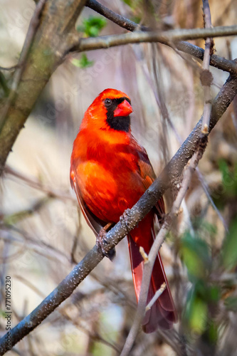 vibrant, birding, tree, avian, red, wild, cardinal, macro, us, high-coloured, isolated, ornithology, garden, songbird, closeup, portrait, spring, colourful, male, beautiful, animal, wildlife, nature, bird