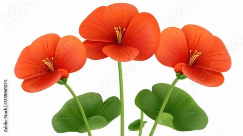 Vivid nasturtium flowers, each petal finely detailed, bloom against a clean white backdrop, showcasing natures beauty.
