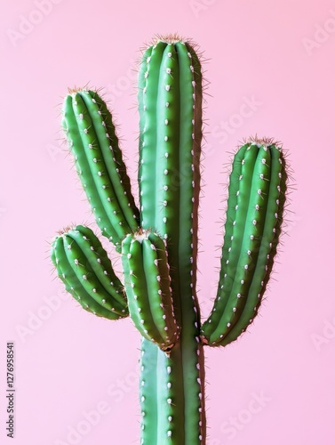 Vivid pink background accentuates cactus's distinct spines and green hues.