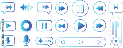 audio, media, sound, voice, mic, microphone, record, speech, chat, bubble, message, talk, waveform, wave, play, pause, stop, rewind, forward, buttons, control, slider, volume, speaker, mute, music, podcast, radio, app, interface, digital, icon, vector, set, collection, modern, technology, communication, player, streaming, design, symbol