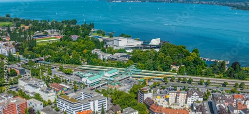 bregenz, bodensee, vorarlberg, austria, railroad station, casino, mountain, mount, alpen, aerial photo, panorama, outlook, body of water, see, summer, sunny, sunshine, blue, heaven, lifestyle, countryside, outdoors, scenery, outside, nature, from above, architecture, building, urban, urbanity, tour tourism, tour tourism, travel, recreation, vacation, touristy, vacation