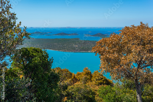Vransko Lake and Kornati Islands. View from Kamenjak hill. Dalmatia, Croatia.