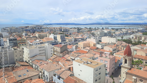Vue aérienne sur la ville de Palavas-les-Flots, située dans le département de l'Hérault en France