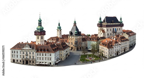 Vue a�rienne charmante ville m�di�vale soleil �clatant architecture ancienne. AI Generated