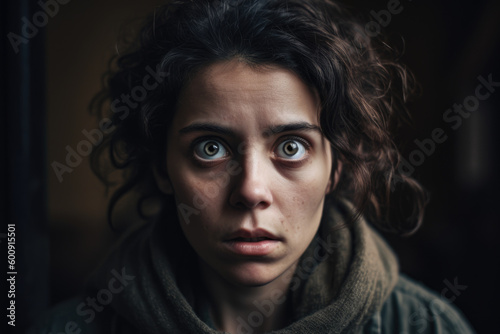 Vulnerable Portrait of a Woman with a Frightened Look, generative ai