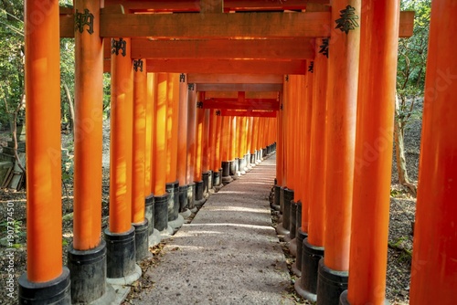Walk through hundreds of red traditional torii gates, Fushimi Inari Taisha, Shinto Shrine, Fushimi Inari-taisha Okusha Hohaisho, Kyoto, Japan