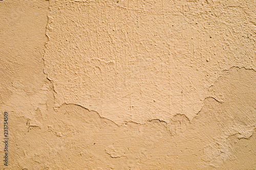 Wall with cracks in the yellow plaster
