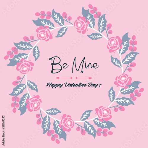Wallpaper of card be mine, with beautiful pink wreath frame. Vector