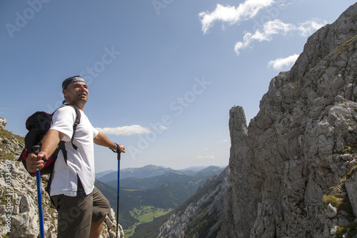 austria, mount, mountain, hiker, hike, nature, countryside, man, alpen, europa, climber, summer, recreation, sport, athletic, equipment, backpack, headband, move, walk, recreation, hillwalking, western europe