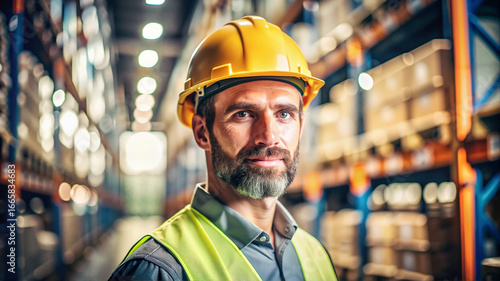 Warehouse engineer in yellow safety helmet