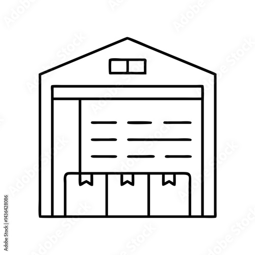 warehouse, icon, illustration, isolated, line, line art, minimalist, modern, object, outline, signs, simple, stroke, symbol, thin, vector, web, web icon, black, black-and-white, decoration, design, flat