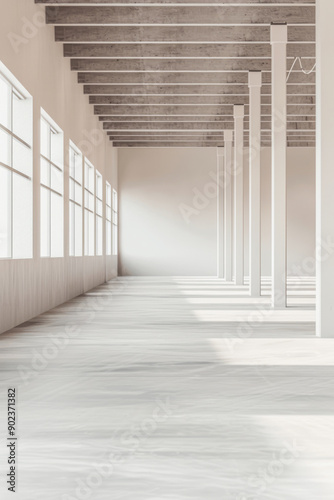 Warehouse interiors in neutral tones with copyspace. Commercial Real Estate property image concept.