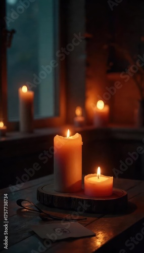 Warm Candlelight Illuminates Dark Room, Casting Soft Shadows Cozy Romantic Ambiance, Perfect for Intimacy and Tranquility