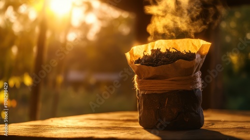herbal, tea, steam, sunset, nature, warmth, cosy, relaxation, cup, drink, ingredient, organic, sunlight, infusion, aroma, tradition, wellness, leisure, beverage, natural, rustic, environment, calm, peaceful, wood, table, hot, fresh, health, lifestyle, serving, culture, brew, preparation, essence, farm, rural, morning, afternoon, vegan, botanical, calmness, simplicity, comfort