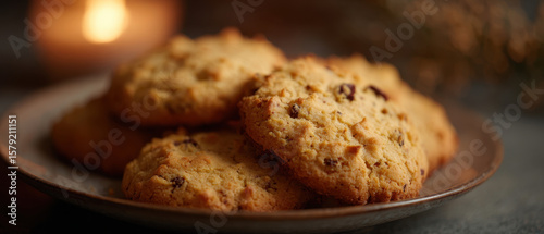 Warm pumpkin cookies with raisins on plate, perfect for cozy evenings
