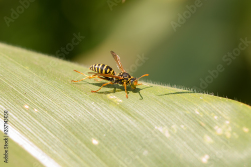 Wasp on the green leaf in nature.Insect