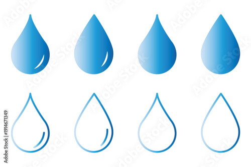 Water drop icon with editable stroke and solid styles. Vector icon for liquid, water and nature. Water drop icon for templates, web design and infographics. Vector illustration.