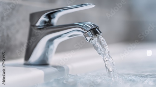 Water flowing from a chrome faucet