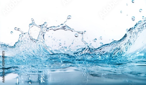 Water Splash Dynamic Blue Waves on White Background