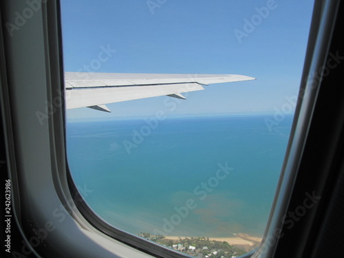 aeroplane, sky, wing, plane, window, aircraft, flight, cloud, fly, travel, air, blue, flying, cloud, view, jet, transportation, aerial, airline, high, aeroplane, aviation, up high, water, sea
