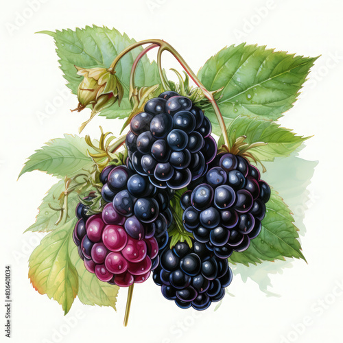 Watercolor Blackberry Illustration, Generative Ai