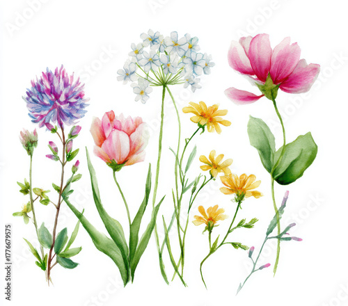 watercolor, floral, wildflower, flower, botanical, illustration, hand-painted, nature, soft, pastel, delicate, stem, leaf, garden, natural, organic, airy, gentle, bright, spring, summer, bloom, pink, green, yellow, lilac, beauty, composition, pattern, decorative, art, design, decor, print, artwork, hand-made, subtile, feminine, romantic, vintage, modern, texture, paper, creative, digital, flower