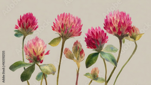 clover, blossom, watercolor, botanical, flower, pink, nature, floral, illustration, art, plant, greenery, flower petals, vibrant, delicate, study, natural, beauty, design, decoration, spring, summer, garden, artistic, composition, aesthetic, colourful, detailed, closeup, arrangement, soft, background, texture, leaf, bud, bloom, growth, organic, fresh, seasonal, creative, visual, unique, style, traditional, craft, hand-made, serene, peaceful