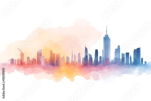 city, skyline, city landscape, urban, landscape, watercolor, painting, illustration, background, design, abstract, modern, architecture, building, skyscraper, tower, sunset, sunrise, dusk, dawn, panorama, view, horizon, metropolis, city landscape, serenity, peaceful, calm, tranquil