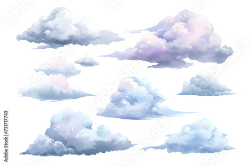 Watercolor clouds collection isolated on transparent background