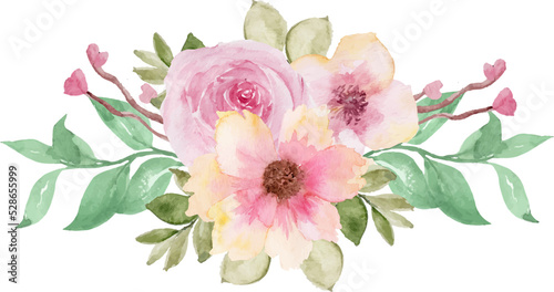 flora, bouquet, blooming, floral, watercolor, arrangement, painted, flower, natural, nature, leaf, foliage, pink, blossom, botanical, assorted, chaplet, leaf, tree branch, decorative, isolated, greeting, elegant, invitation, drawing, beauty, greenery, plant, bunch, spring, feminine