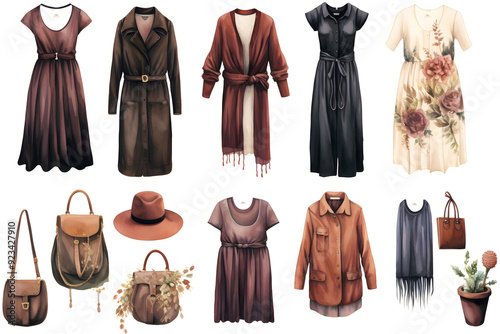Watercolor Illustration collection of woman clothes isolated on white