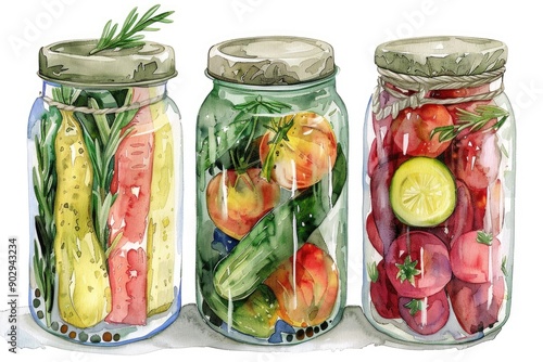 canned, vegetable, watercolor, vegetarian, food, jar, healthy, pickled, diet, receipe, cookbook, ingredient, tomatoes, cucumber, hot, spicey, fresh, organic, eating, goggles, preserved, tasty, nourishment, natural, seasonal, market, homemade, canning, delicious, season, snack, vegan, rustic, marinated, background, cookery, epicure, white, agricultural, harvest, traditional, isolated, deli, container, template, cooking