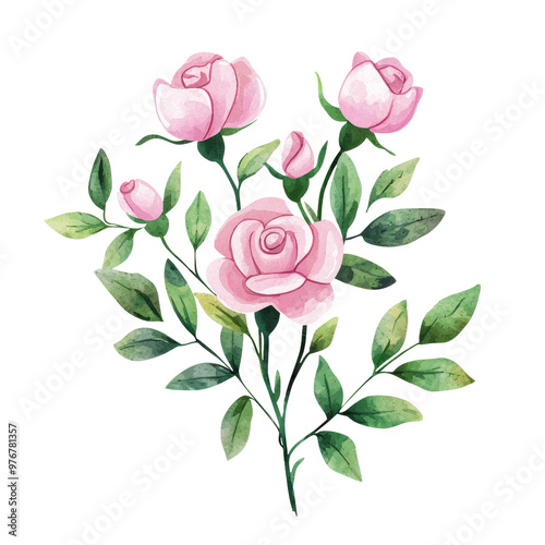 pink, rose, watercolor, illustration, flower, botanical, floral, green, leaf, nature, plant, garden, art, decorative, beauty, spring, bloom, romantic, colourful, vibrant, blossom, design, transparent, soft, delicate, arrangement, natural, aesthetic, lovely, creativity, decoration