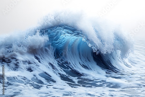 Watercolor Japanese blue waves, Japanese blue ocean art. Illustration of ocean blue waves in white background